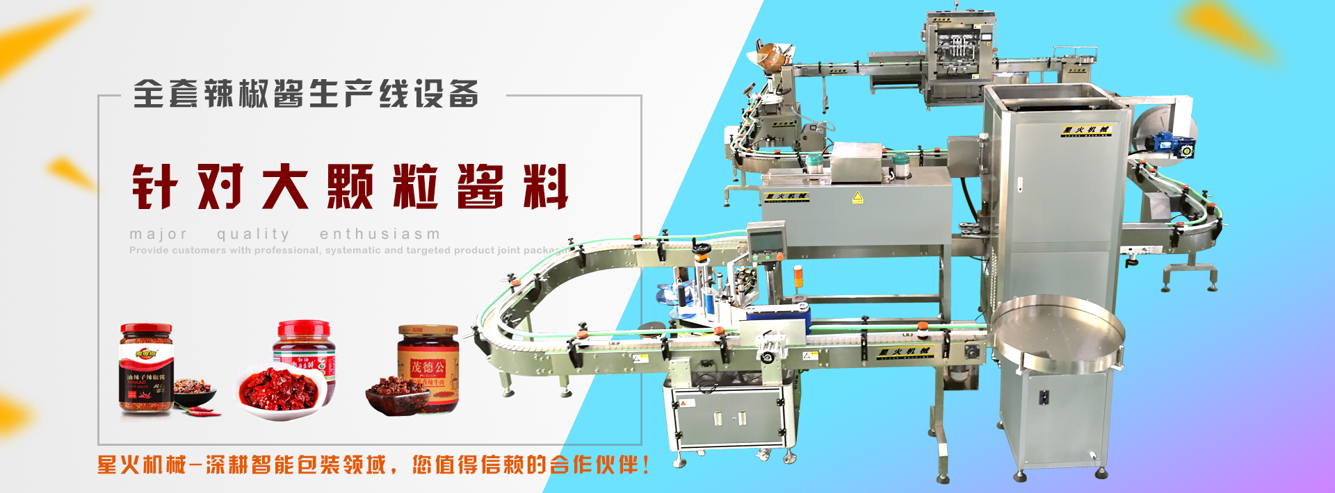 本公司擁有專(zhuān)業(yè)的技術(shù)人才、工程師和售后服務(wù)人員,形成一支高素質(zhì)年輕化極富團(tuán)隊(duì)創(chuàng)新精神的隊(duì)伍,可以及時(shí)地為客戶(hù)提供完善的售后服務(wù)。星火灌裝機(jī)有限公司是一家多年設(shè)計(jì)、生產(chǎn)、安裝、銷(xiāo)售及技術(shù)服務(wù)的專(zhuān)業(yè)化公司。從事食品、制藥、化工包裝機(jī)械、灌裝機(jī)械、無(wú)人化智能包裝生成線(xiàn)的專(zhuān)業(yè)制造廠(chǎng)家種類(lèi)豐富,產(chǎn)品適用于液體、膏體、粉劑、顆粒、醬料、辣椒醬等多種產(chǎn)品的自動(dòng)化灌裝、包裝,廠(chǎng)家直銷(xiāo),專(zhuān)業(yè)的自動(dòng)化辣椒醬生產(chǎn)線(xiàn)加工設(shè)備制造基地,為廣大的新老客戶(hù)提供了質(zhì)優(yōu)價(jià)廉的包裝機(jī)產(chǎn)品。公司誠(chéng)信經(jīng)營(yíng),憑借多年的經(jīng)驗(yàn),專(zhuān)業(yè)水平和純熟的技術(shù),得到了快速的發(fā)展。